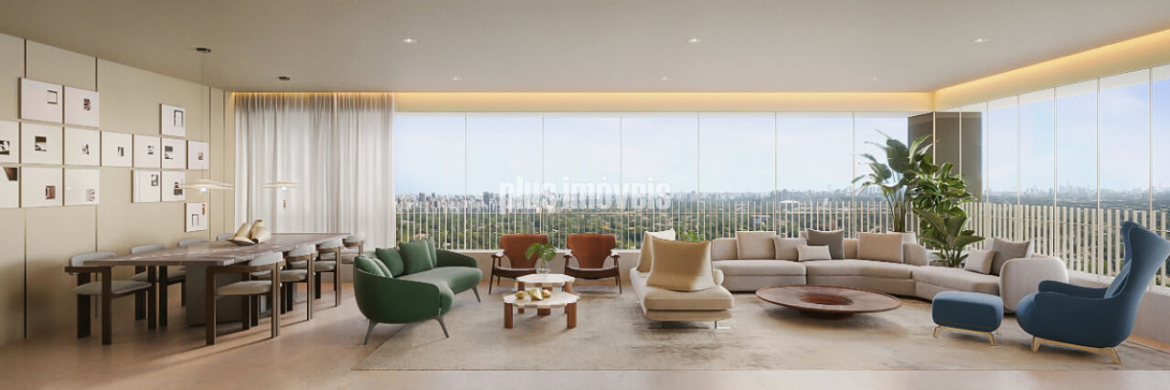 com pé-direito alto, amplos terraços e uma integração perfeita entre os ambientes. O acabamento segue o padrão internacional de design, com materiais nobres, marcenaria personalizada e banheiros em mármore.