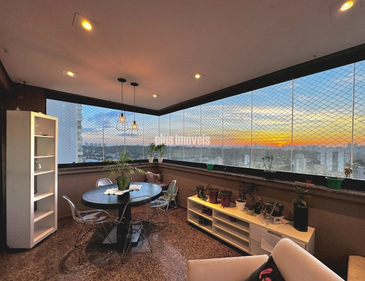A ampla sala de estar com sacada oferece vistas deslumbrantes e é ideal para receber convidados. A cozinha grande, equipada com armários embutidos, garante praticidade no dia a dia. O imóvel dispõe também de dependência de empregada, área de serviço e lavanderia bem-equipada.
